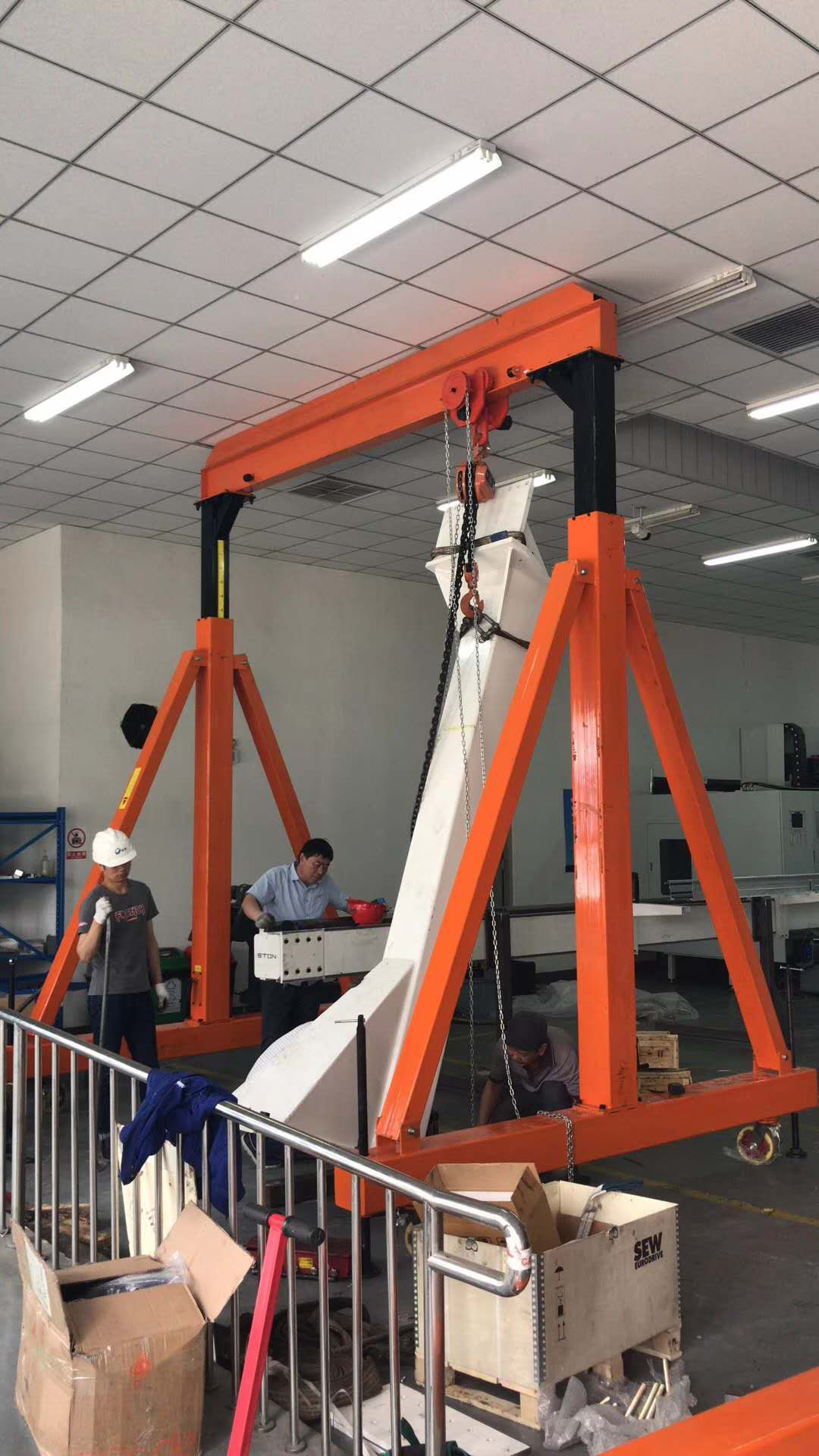 3、如果要讓龍門吊移動(dòng)就要提前清理好行走范圍內(nèi)的地面。如果我們的小型龍門吊是可以移動(dòng)的,大家在對(duì)它移動(dòng)之前,一定要先對(duì)移動(dòng)范圍內(nèi)的地面進(jìn)行清理,確保工作范圍內(nèi)沒有障礙物,并且移動(dòng)的地面應(yīng)該是水平的,地面上不能有坑坑洼洼的不平,不然在推行過程中很容易發(fā)生意外。
